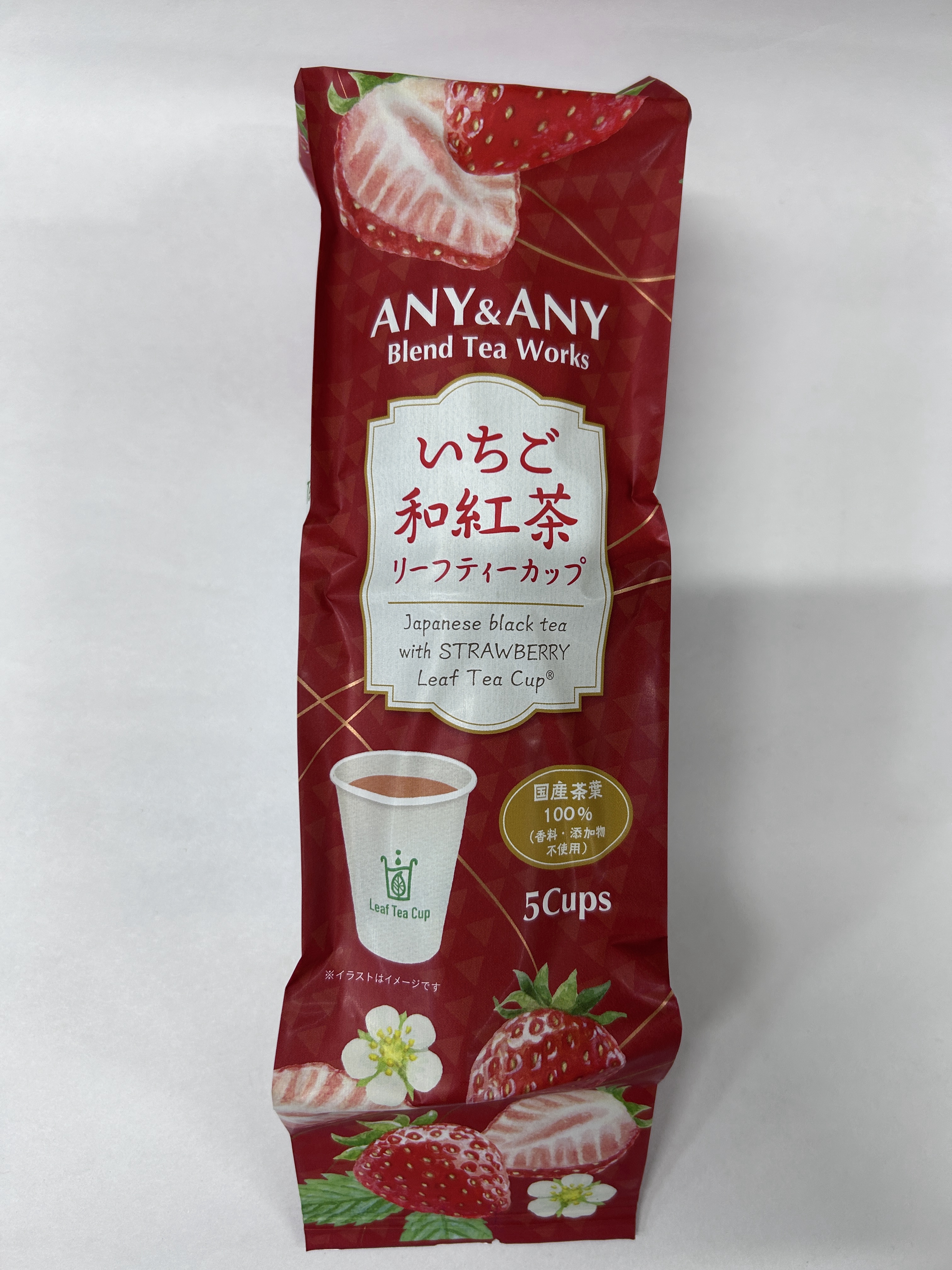苦みの少ない国産紅茶に、甘酸っぱい乾燥いちごを贅沢にブレンドしました。